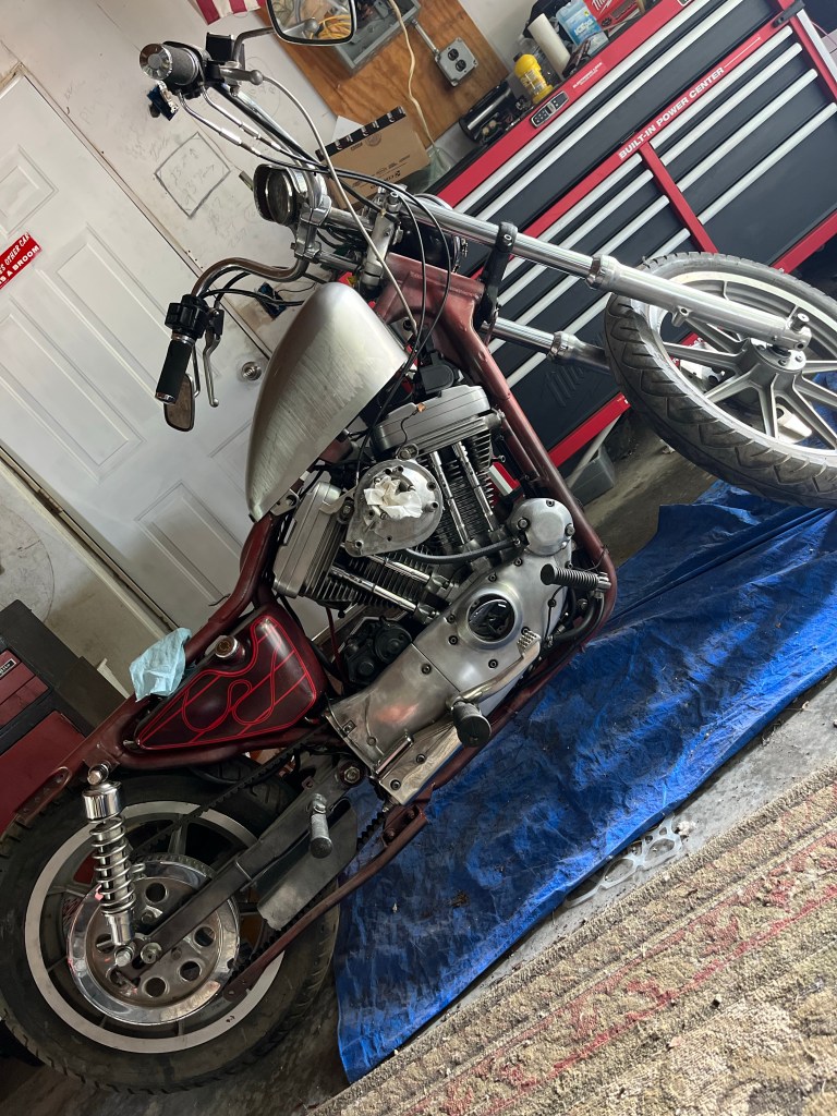 This is what has now become my new passion of creating. I decided to take the leap after the 2021 rally. I always wanted to learn and thought it was out of my capabilities. Well after several incidents of where I could of been injured or worse, I chose to pull apart my first bike and learn on 1998 Harley Davidson Sportster and rebuild the entire top end. Once taken apart I decided to put it in my basement for the winter and rebuild it and repaint everything. I then completed this and it has been to the 22′ and 23′ rally successfully. I might of had my air cleaner fall off, but other than that its rode like a dream. After the success of the rebuild I was then ready to buy my second bike complete ground up rebuild with a little more customization whilst I get to ride still.