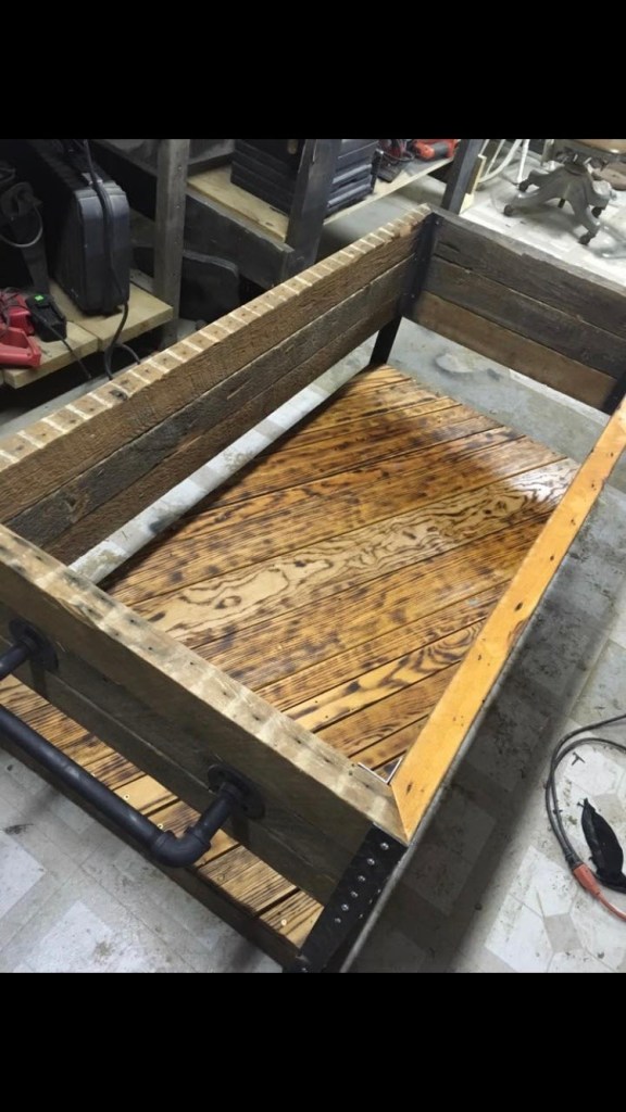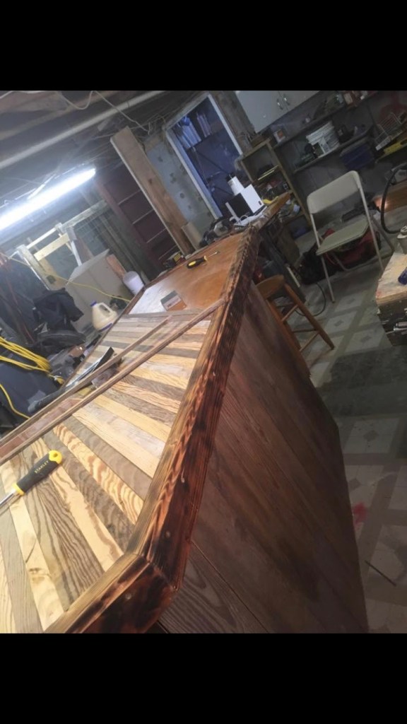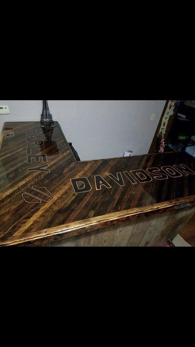 The art of bringing something old and giving it new life. This is the first passion I had of taking something that was trash to one and repurposing it and giving it second life. You will see benches and mirrors made of picket fences reclaimed as well as another abstract pieces from it. Many salvaged materials might of come from various businesses and cleaning out of buildings, basements or warehouses. The HD Bar is built around the idea of the fridge and comes apart in two pieces by only pulling a few screws. It is recycled barn wood flooring for the sides and shelving in the bottom recycled flooring for the top with a burnt edged of a 2 by 4.